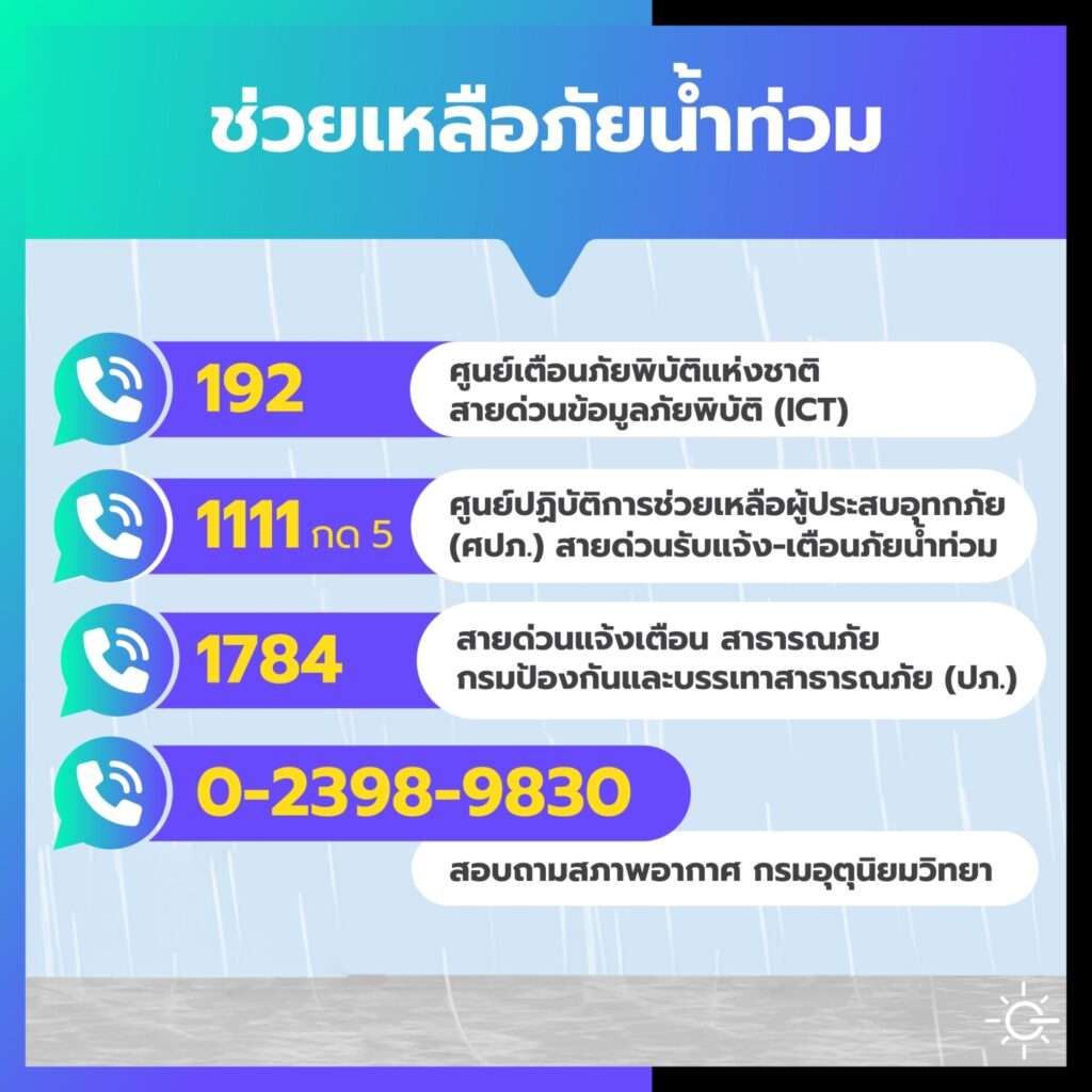 ☎️ โทร. 1111 กด 5 ศูนย์ปฏิบัติการช่วยเหลือผู้ประสบอุทกภัย (ศปภ.)