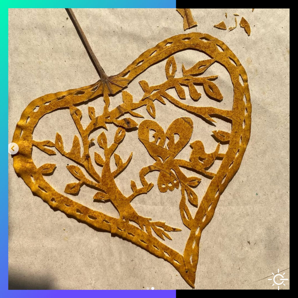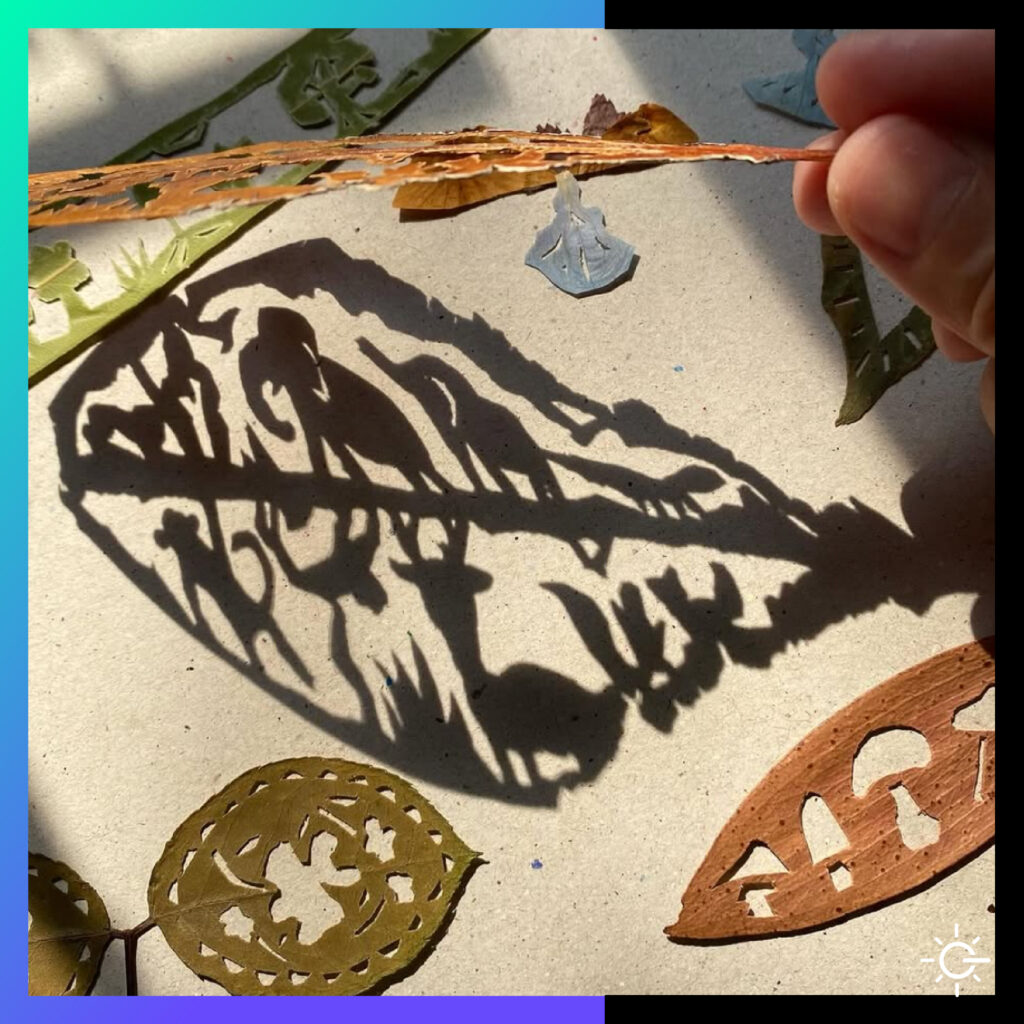 “เก็บมาเรื่อยๆ จนเริ่มเห็นว่ากลีบดอกไม้ใบไม้เพียงชิ้นเดียว ก็มีความหมายมากๆ ต่อโลก เลยเริ่มใช้เวลากับดอกไม้ใบไม้แต่ละกลีบ ทำเป็นชิ้นงานในแบบของตัวเองโดยใช้มีดค่อยๆ ตัดเป็นเรื่องราวต่างๆ”