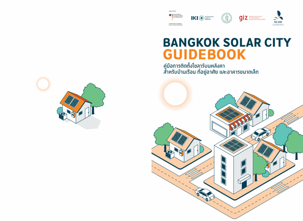 กรุงเทพมหานคร จับมือร่วมกับโครงการความร่วมมือไทย-เยอรมันด้านพลังงาน คมนาคม และการเปลี่ยนแปลงสภาพภูมิอากาศ (TGC EMC) เพื่อจัดทำ “คู่มือการติดตั้งโซลาร์บนหลังคา (Solar Rooftop Guidebook)” จำนวน 2 เล่ม โดยเล่มที่ 1 จัดทำสำหรับบ้านเรือน ที่อยู่อาศัย และอาคารขนาดเล็ก และเล่มที่ 2 จัดทำสำหรับอุตสาหกรรม